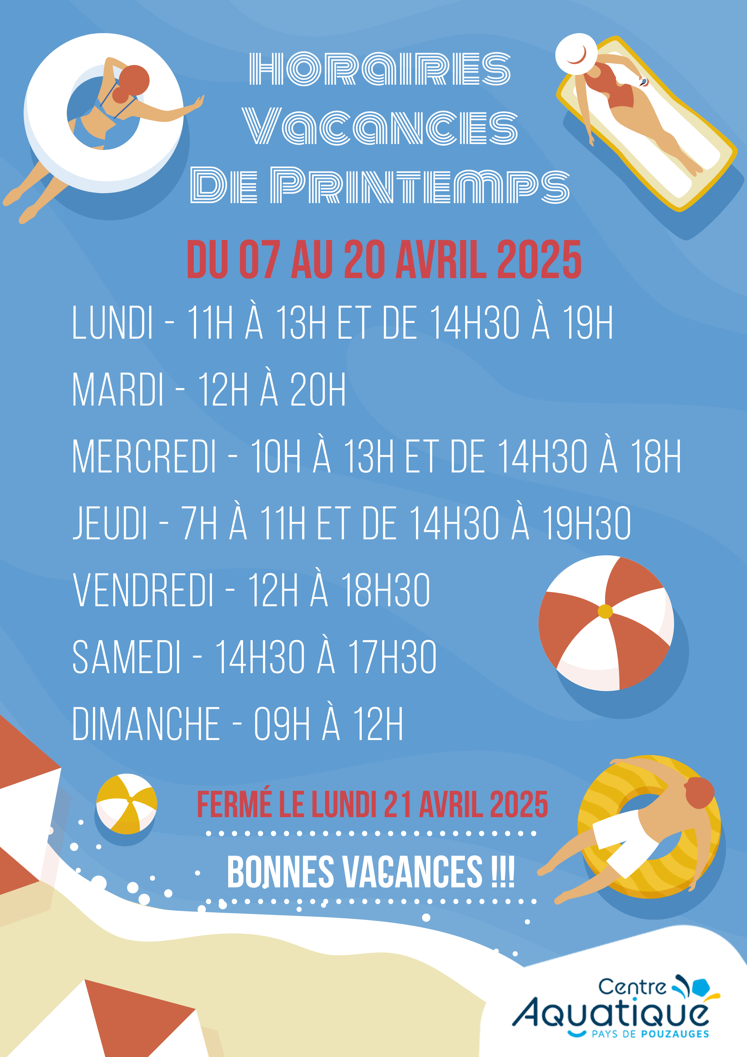 Horaires d’ouverture public et remise en forme – Vacances de printemps – Avril 2025