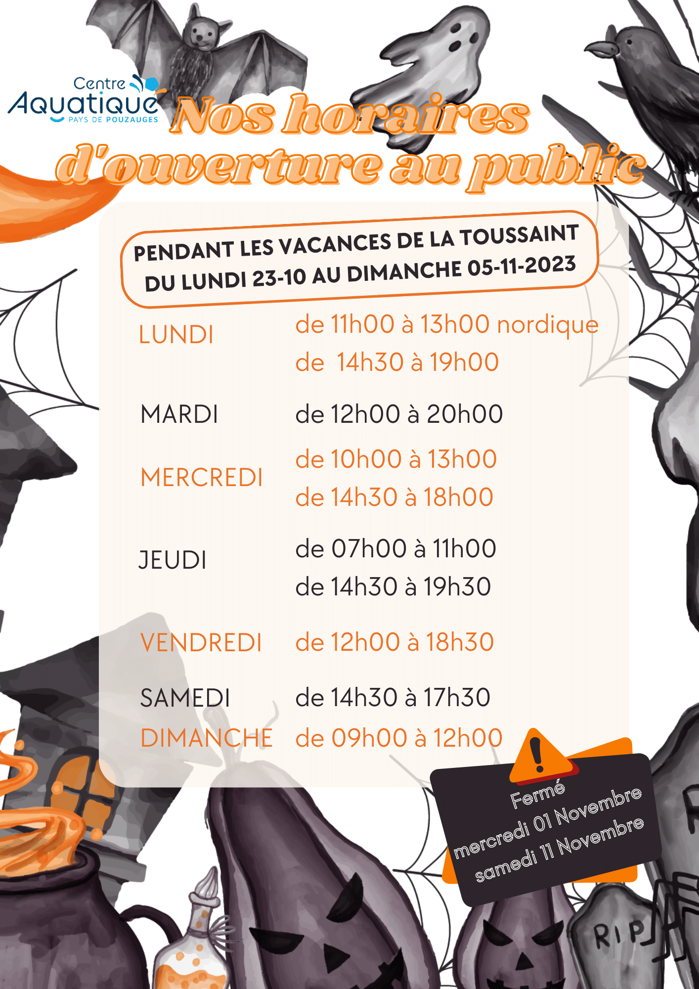 Horaires d’ouverture vacances de la toussaint 2023