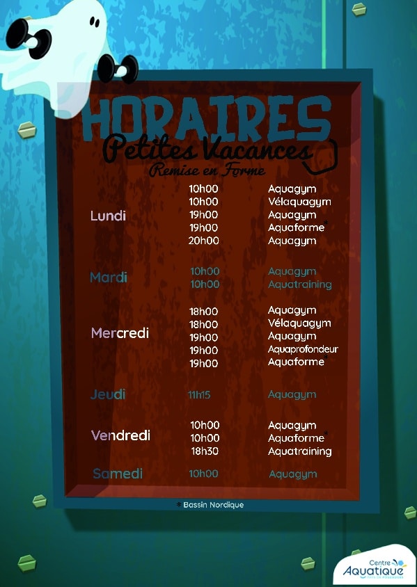 Pour afficher les horaires d’ouverture et les horaires des cours de remise en forme, cliquez sur les images ci-dessous.
