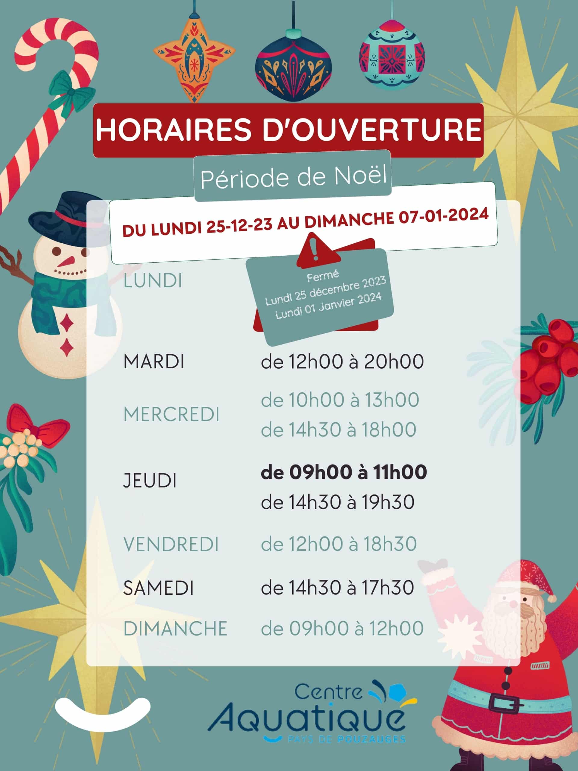 Votre centre aquatique passe en horaires de vacances scolaires à partir du