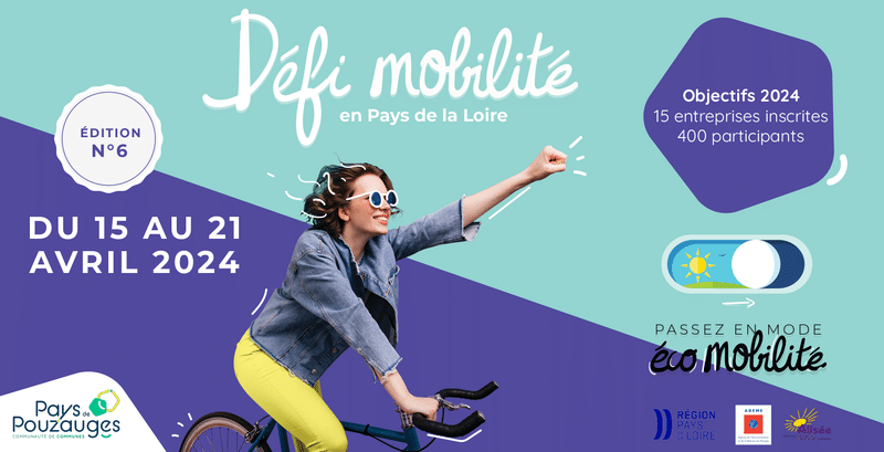 Défi Mobilité 2024Lire +La Communauté de communes du Pays de Pouzauges s’engage dans le Défi Mobilité, du 15 au 21 avril 2024.