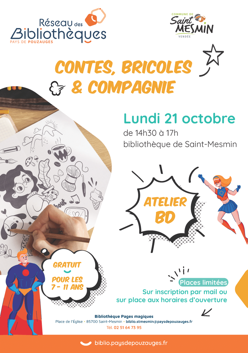 Les enfants de 7 à 11 ans peuvent se laisser conter des histoires et réaliser un bricolage sur le thème de la BD lors de l’animation Contes, bricoles et cie, organisée par le réseau des bibliothèques :