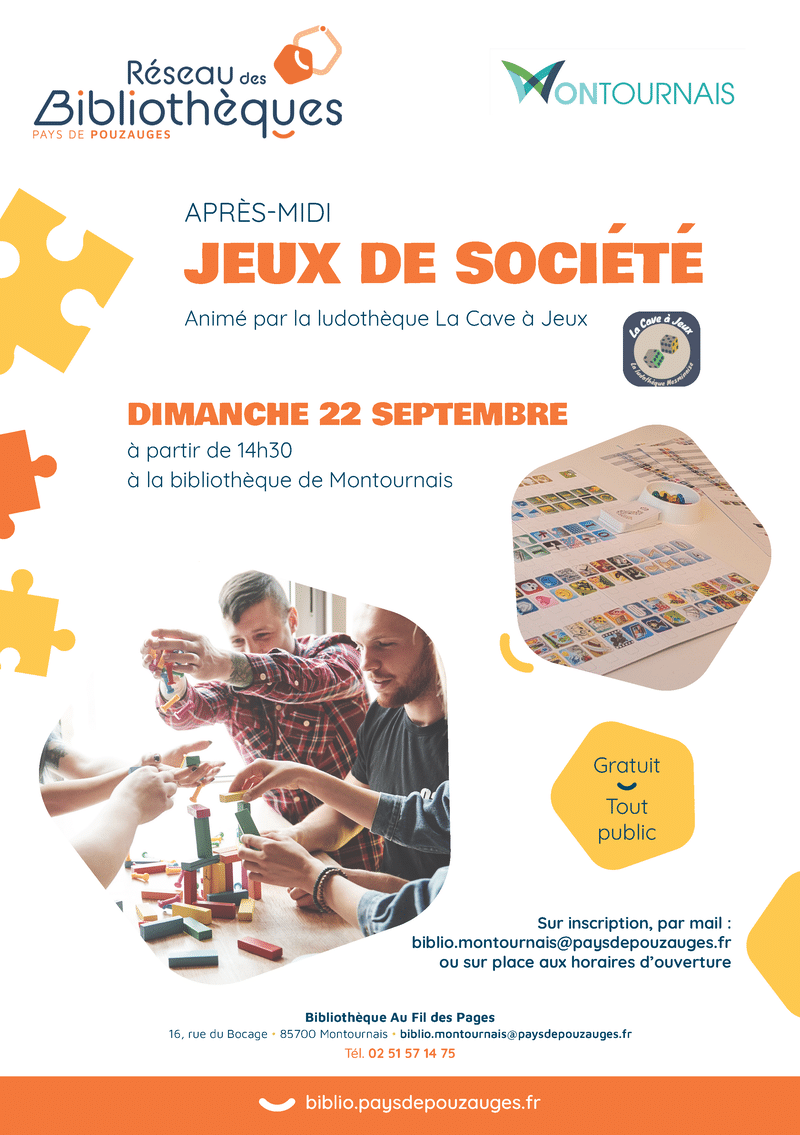 Le réseau des bibliothèques du Pays de Pouzauges vous propose un après-midi Jeux de société, animé par la ludothèque La Cave à Jeux :