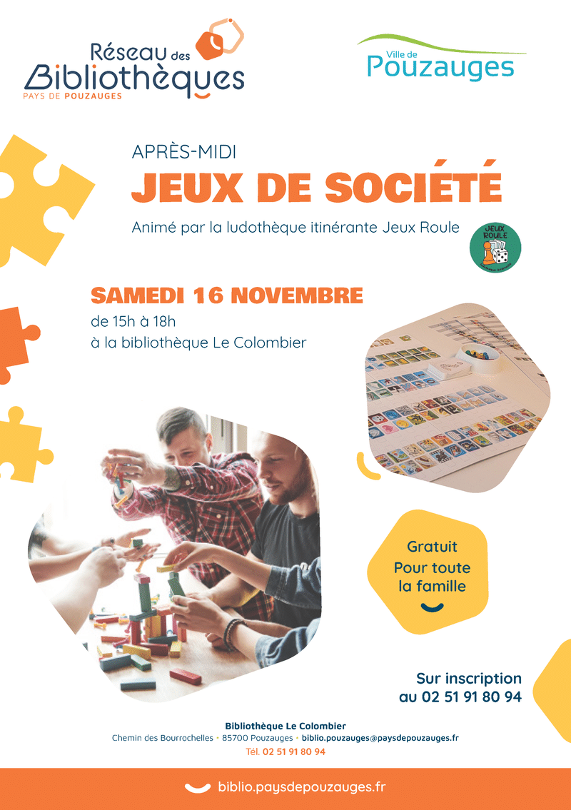 Venez jouer à différents jeux de société le temps d’un après-midi animé par Jeux Roule, la ludothèque itinérante :