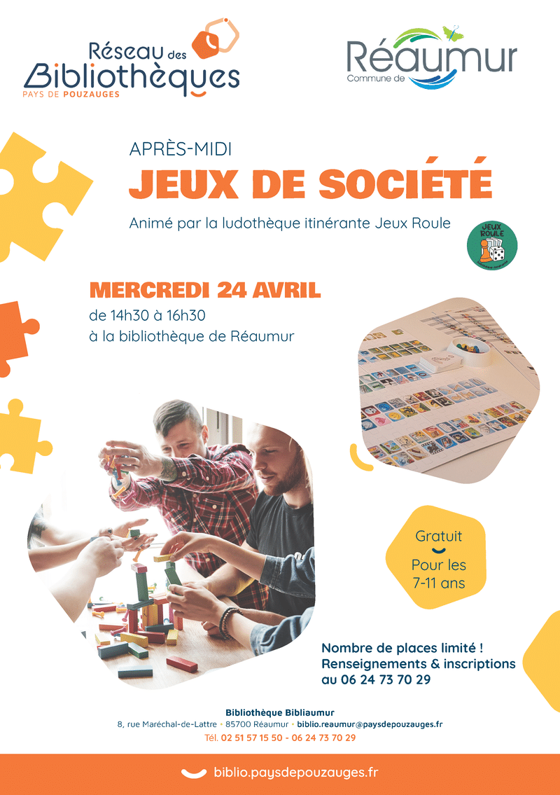Le réseau des bibliothèques du Pays de Pouzauges vous propose un après-midi Jeux de société, animé par la ludothèque itinérante Jeux Roule.