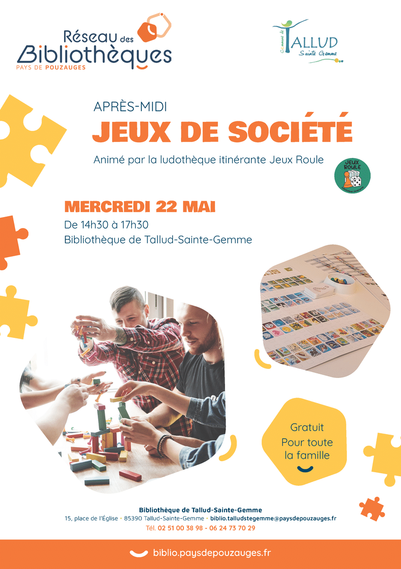 Le réseau des bibliothèques du Pays de Pouzauges organise un après-midi Jeux de société, animé par la ludothèque itinérante Jeux Roule :