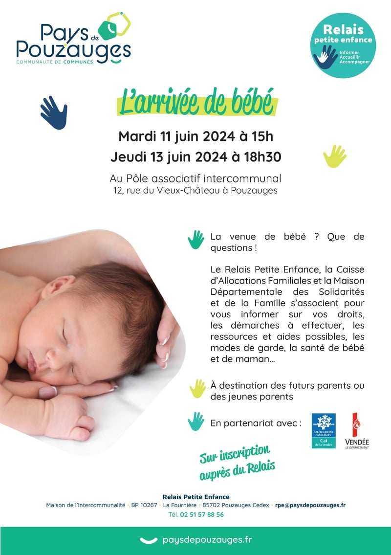 Le Relais Petite Enfance du Pays de Pouzauges organise un temps fort « L’arrivée de bébé », à destination des futurs ou jeunes parents :