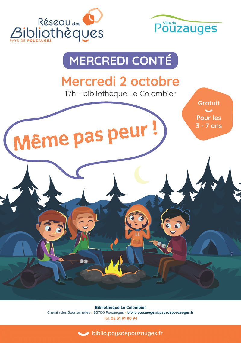Les enfants sont invités à découvrir des histoires sur le thème « Même pas peur ! » lors du mercredi conté organisé par le réseau des bibliothèques du Pays de Pouzauges :