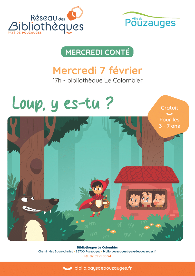 Le réseau des bibliothèques du Pays de Pouzauges organise un mercredi conté sur le thème « Loup, y es-tu ? » :