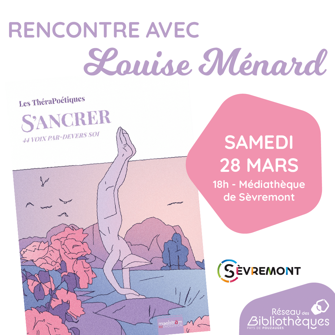 Rencontre avec Louise Ménard, éditrice, dans le cadre du Printemps des poètes : présentation de son métier et du recueil de poésie « S’ancrer 44 voix par-devers soi » (textes poétiques et exercices « thérapoétiques ») suivie d’une performance artistique et d’un moment convivial.