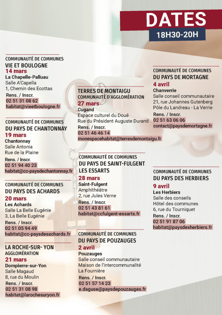 Plusieurs soirées d’information sont organisées du 14 mars au 9 avril 2024. Sur le Pays de Pouzauges, elle a lieu :