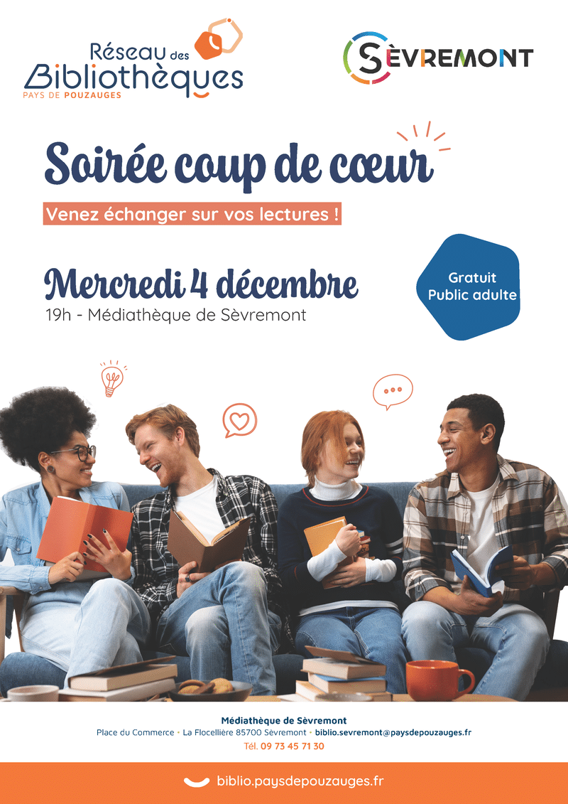 Le réseau des bibliothèques du Pays de Pouzauges vous convie à une soirée coup de cœur lecture :