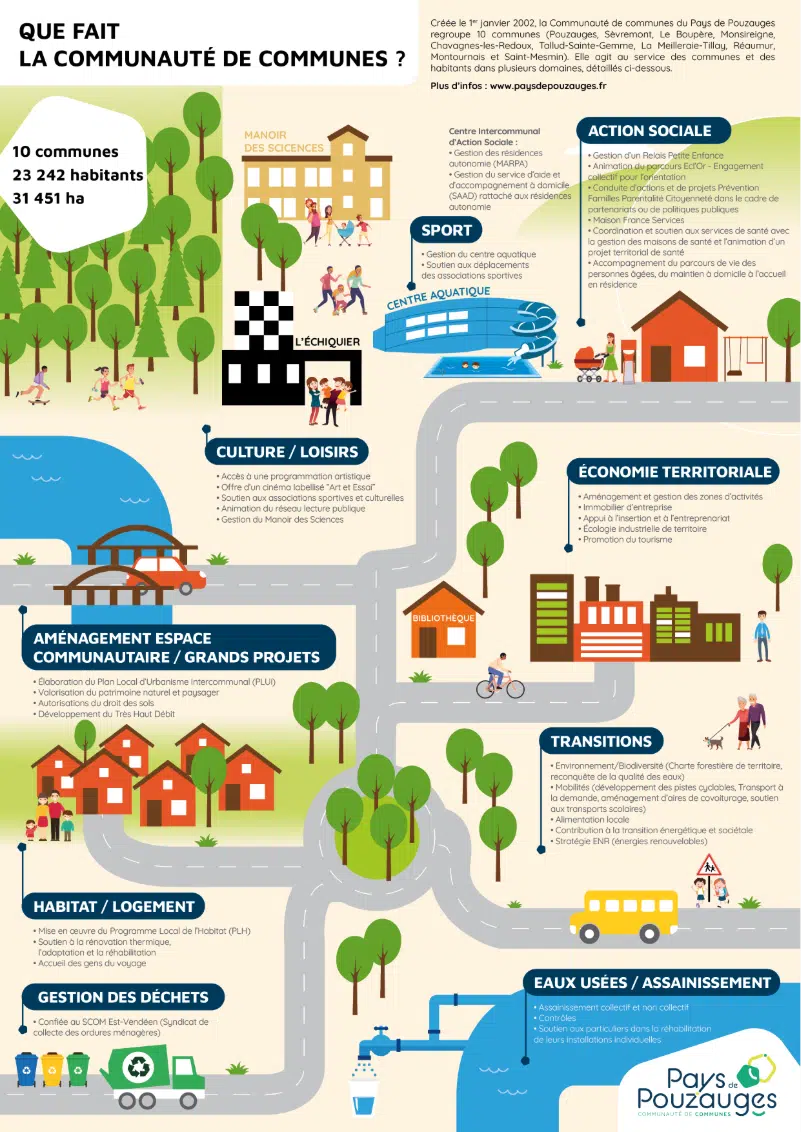 La Communauté de communes du pays de pouzauges a fait du « faire ensemble » sa marque de fabrique. En 2020, elle s’est dotée d’un Projet de Territoire.