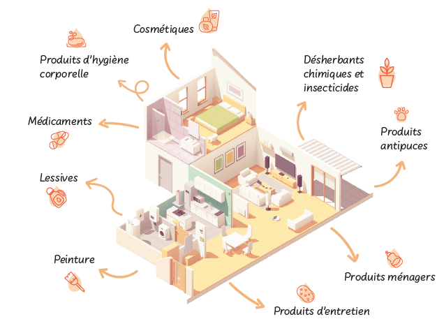Vaisselle, lessive, soins du corps, produits de bricolage… : beaucoup de produits utilisés chaque jour à la maison en contiennent. Lorsque nous nettoyons, prenons notre douche, tirons la chasse, ces substances s’en vont dans les canalisations des eaux usées pour être conduites jusqu’à une station d’épuration qui ne les retient qu’en partie. Elles se retrouvent alors dans les barrages, les cours d’eau, les nappes souterraines d’où provient l’eau potable.
