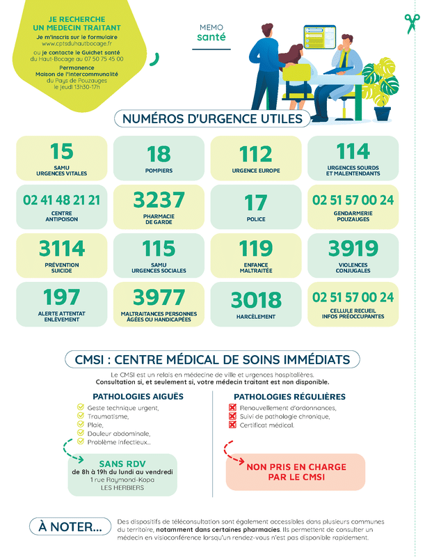 Plus d’informations dans le flyer Organisation de l’accès aux soins sur le territoire du Haut Bocage en téléchargement ci-contre.